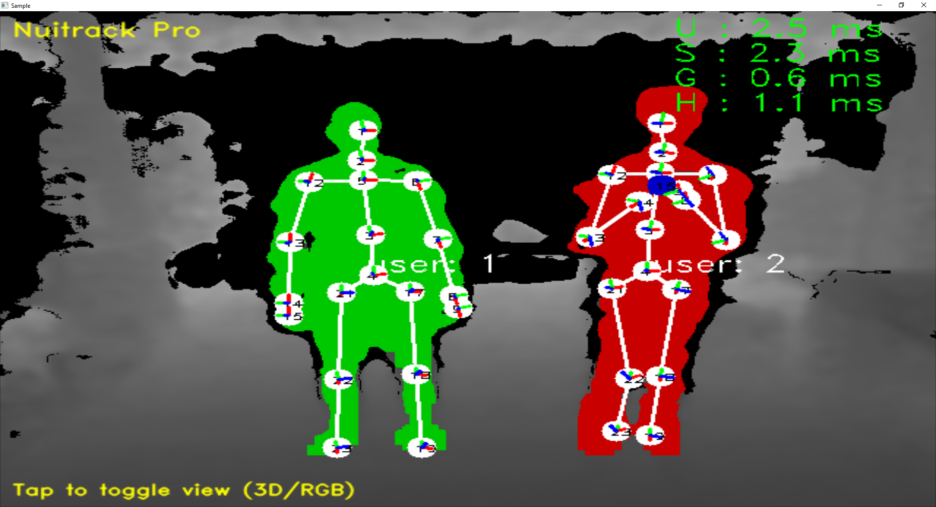 For the players we needed to assume a broad range of clothes, hair-types and accessories and this would further limit the ability to track and capture separate limbs in any significant way. We developed a method to track main data points when tracking dropped out on the limbs. The most stable parts of the body were the spine and shoulders. By measuring distance and rotation we could track our players movements from a few reliable points. Again this was only used when the players data dropped out on their limbs.